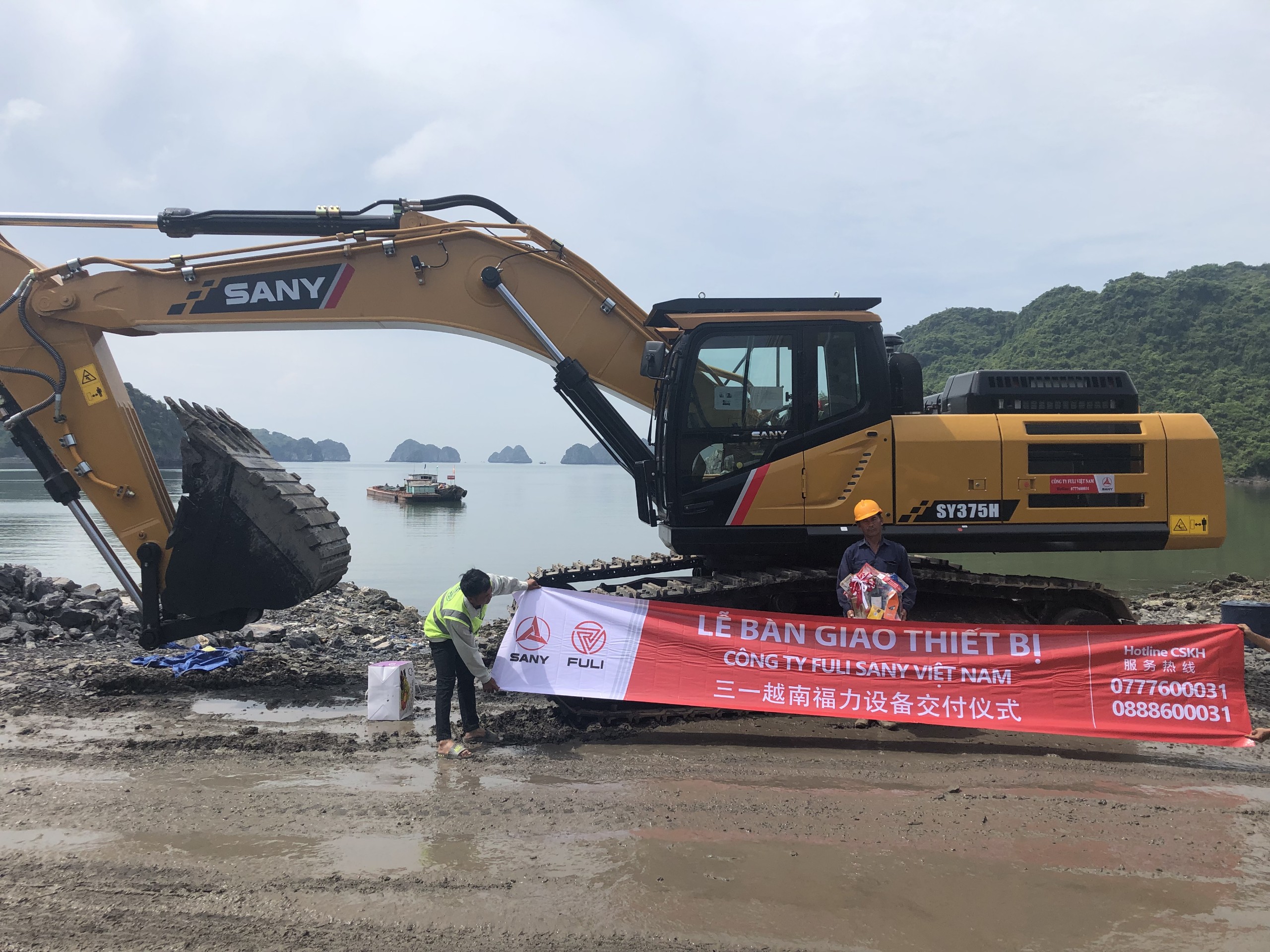 Hình ảnh bàn giao máy xúc đào bánh xích SY375 tại Cát Bà - Hải Phòng cho đơn vị Tùng Linh.