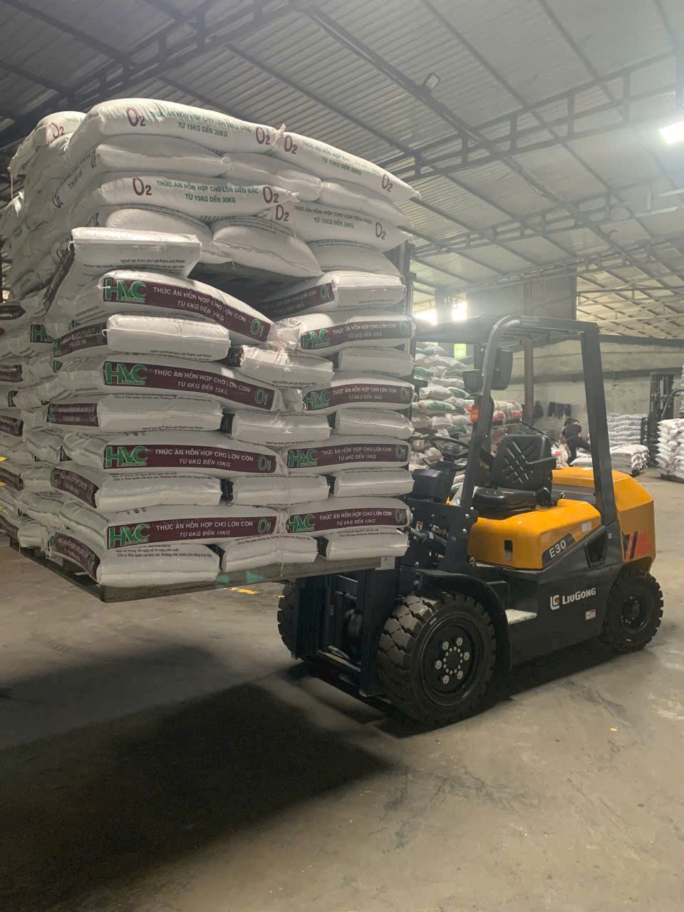 Hình ảnh xe nâng LIUGONG 3 tấn làm việc trong nhà máy