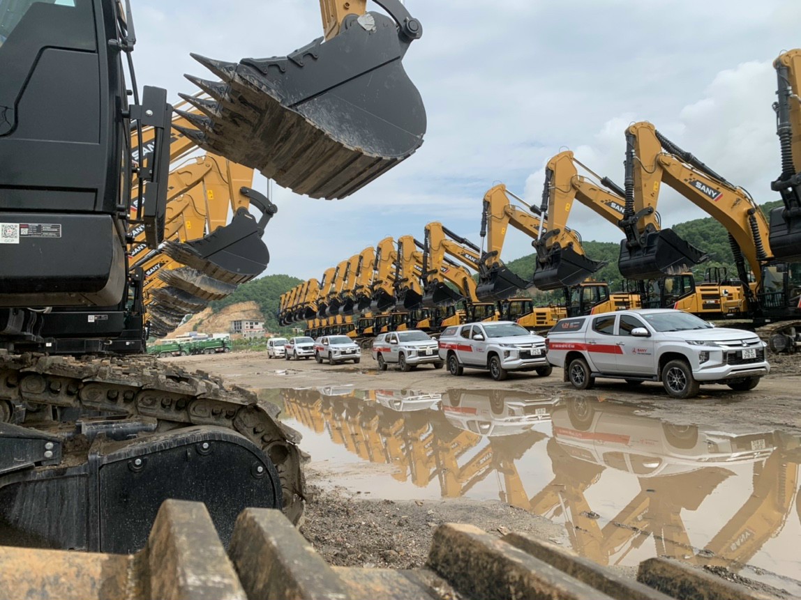 Hình ảnh bàn giao lô máy xúc đào SANY làm việc tại dự án Hạ Long Xanh của Vingroup.