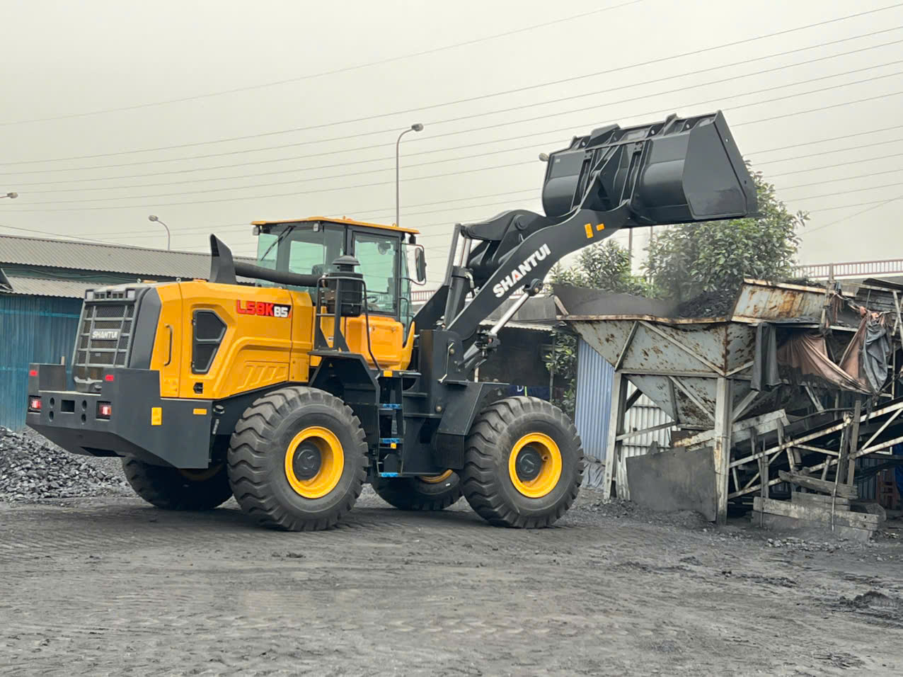 Hình ảnh máy xúc lật SHANTUI L58B5 gầu 4.2m3 đổ cao 3.6m