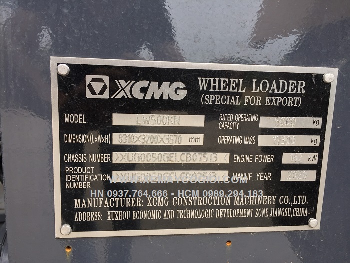 THÔNG SỐ KỸ THUẬT MÁY XÚC LẬT XCMG LW500KN: