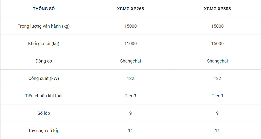 Xe lu bánh lốp XCMG được sử dụng chủ yếu là loại 26 tấn và 30 tấn tại Việt Nam. Đây là 2 model sản phẩm đã xây dựng lên thương hiệu xe lu của tập đoàn trong thi công bê tông nhựa nóng. Tự trọng lớn kết hợp cùng khối gia tải linh hoạt giúp cho thiết bị thi công hiệu quả hơn. Hai model được sử dụng đó là XCMG XP263 và XCMG XP303.