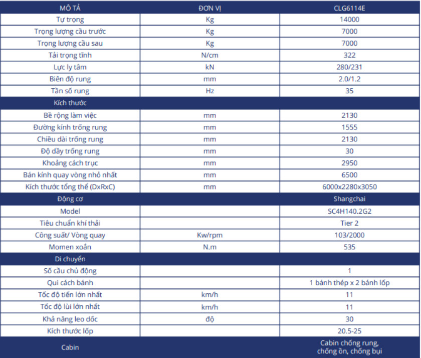 THÔNG SỐ KỸ THUẬT LU RUNG LIUGONG CLG6114E: